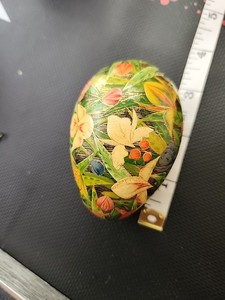 Vintage Fetco India Kashmir Egg Shaped Hand Painted Papier-mâché Trinket Box