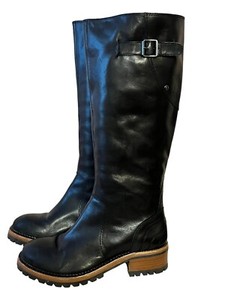 ASH Knee High Boots •37/US 6• Black Leather Buckle/Stud Trim Lug Sole MSRP $385