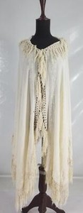 Antique Chinese Silk Hand Embroidered Floral Cape Shawl 225x80cm