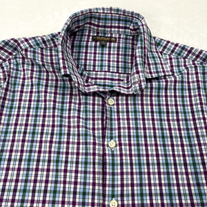 Peter Millar Mens Shirt Large Summer Comfort Blue Plaid Performance Button Up