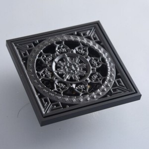 Carved Black Brass Square Shower Drain Floor Waste Drain Cover Strainer mhr160