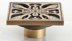 Antique Brass Carved Floor Drain Square Bathroom Wet room Shower Drain mhr008
