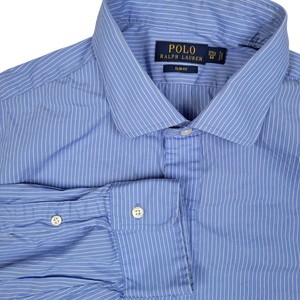 Polo Ralph Lauren Dress Shirt Slim Fit XL 17 1/2 Blue White Pinstripe