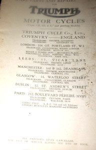 TRIUMPH 1925 PRICE LIST OF SPARE PARTS AND REPART MANUAL
