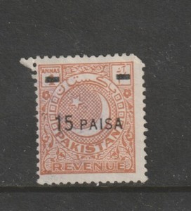 Pakistan BOB Revenue stamp - 15 paisa overprint revalue unused no gum