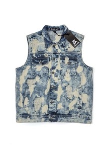 Red Ape Jean Vest Men's M Bleached/Acid Wash Denim Biker Street Distressed NWT