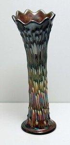 Antique Fenton April Showers Green Carnival Glass Vase 11"