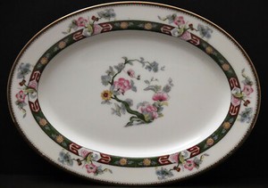 14” Theodore Haviland Cambridge Green Oval Serving Platter. Gold Trim