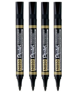 Pentel N850 Black Bullet Tip Permanent Marker Pens Metal Glass Wood N850 Pack 4