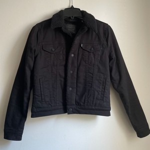 Levis Sherpa Lined Trucker Denim Jacket Snap Button Black Women XS