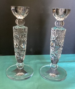 Waterford Marked Pair Crystal Cut Glass Candleholders 5 1/2”