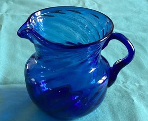 Cobalt Blue Handblown Handmade Glass Swirl Pitcher Creamer