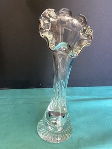 Vtg Clear Glass Jack-in-the-pulpit Trumpet Swung Hand Crafted 10” Vase