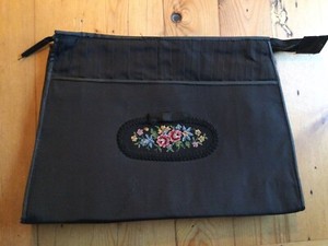 Vintage Black Needlepoint Cosmetic Travel Bag