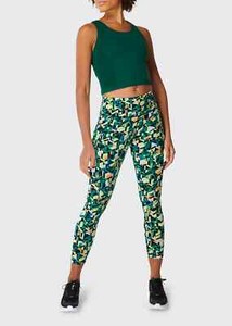 SWEATY BETTY POWER 7/8 WORKOUT LEGGINGS ATHLETIC GREEN CAMO FIGURE SIZE 4-6