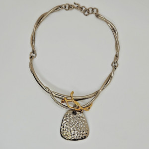 2 tone brutalist collar Necklace hammered metal costume jewelry heavy