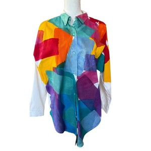 Vintage Ozeana Abstract Art to Wear Shirt Colorful Button Down Long Sleeve L NWT