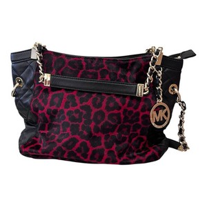 Michael Kors RED Leopard Cheetah Print Handbag Purse Black Gold Accents Chain