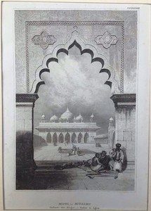 Antique Steel Engraving Print India Art Moti Masjid Pearl Mosque Agra