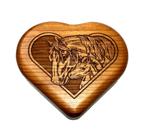 WILDERNESS WOOD HEART SHAPED, LASER ETCHED HORSE MUSICAL TRINKET BOX