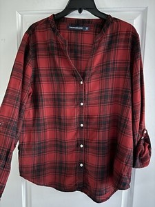 Calvin Klein Jeans Shirt Women’s Size XL Red Back Plaid Flannel