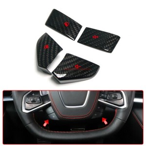 C8 Corvette Carbon Fiber Interior Steering Wheel Volume Button Covers Red Accent