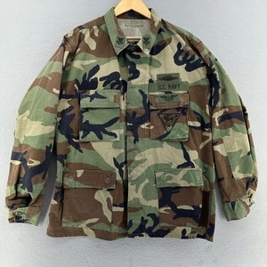 VTG US Navy Seebees Camouflage Military Jacket Woodland Camo L USA 90s Veteran