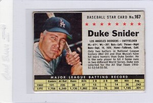 1961 Post #167 Duke Snider Los Angeles Dodgers No Creases