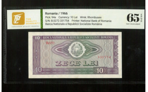 ROMANIA 10 LEI 1966 P94a UNC