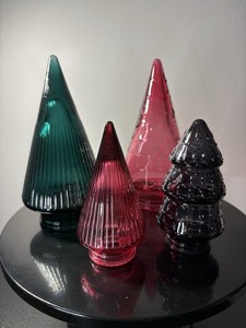 Set 4 Target Glass Christmas Trees Green Smokey Gray Cranberry Pink Mantel Decor