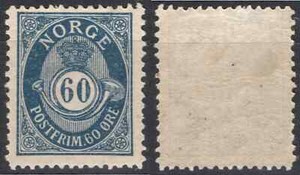 1674 Norway 1898-08, NK 84y Posthorn 60-øre MH, MI 61, SC #58.