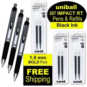 Uni-Ball Signo Impact 207 RT 65870 With Refills 65873, Black Gel Ink, 1.0mm Bold