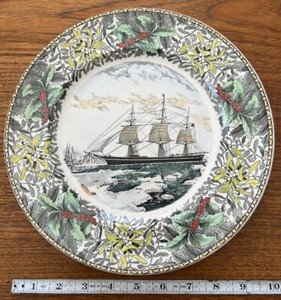 Antique Plate Clipper Ship Red Jacket Adams England Winter Scenes 10.5” Across