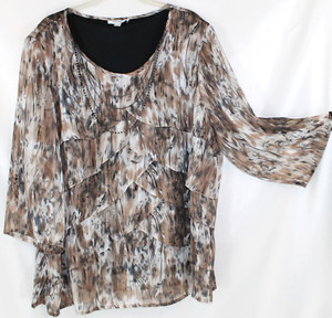 NWT Soft Works Petites Women's Large 3/4 Sleeve Open Neck Sparkle Snake Blouse