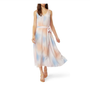 Habitual 'Daphne' Rainbow Dyed Belted Midi Dress - size Extra Small