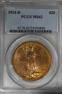 1924-D 20.00 PCGS MS 62 TWENTY DOLLAR GOLD PIECE, SAINT-GAUDEN