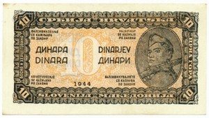 YUGOSLAVIA - 10 Dinara 1944. P50b, aUNC-UNC. (Y033)
