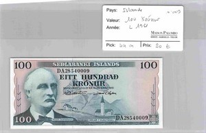 Banknote Iceland - 100 Kronur L1961 - Pick 44a - N° 009