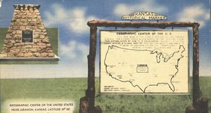 Kansas Historical Marker Geographic Center of US near Lebanon 1946 Postcard
