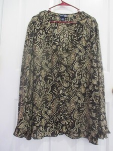 womens Viole + Claire size L bellsleeve v-neck paisley mix print top