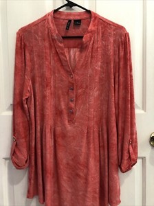 womens New Diretions size 3X pleated v-neck roll tab sleeve top
