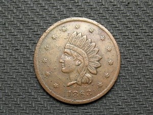 🔥OLD COPPER COIN! U.S. CIVIL WAR TOKEN "1863 ONE CENT INDIAN HEAD" LOT 153us