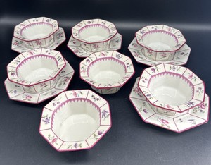 Bohemian Rose Bowl Vase w/ Purple Enamel Pansy Floral Flowers Gold Trim Ruffle RM 281.89Was: RM 375.85