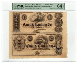 (Uncut Pair) 1800s Canal & Banking Co. - New Orleans, LOUISIANA Notes PMG 64 EPQ