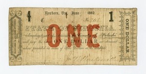 1862 $1 The County of Pulaski - Newbern, VIRGINIA Note CIVIL WAR Era