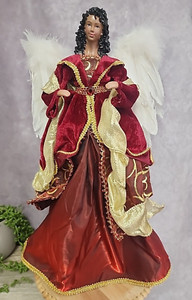 African American Christmas Angel Tree Topper Red Gold Figure Tabletop 19" NEW