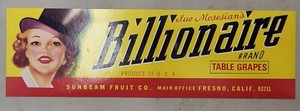 Label Millionaire Grapes Sunbeam Fruit Fresno California