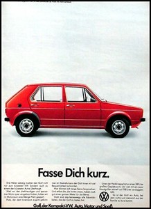 VW Golf 1, originale Werbung aus 1974 .... Fasse dich kurz
