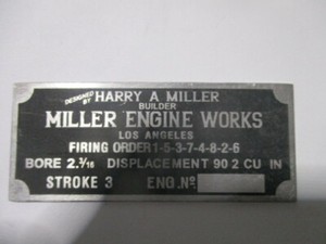 Type Plate Alu Sign ID-Plate Harry Miller Engine Works Vintage USA LA S62 S61