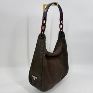 Prada Khaki Nylon Shoulder Hobo Bag With Tortoise Chain